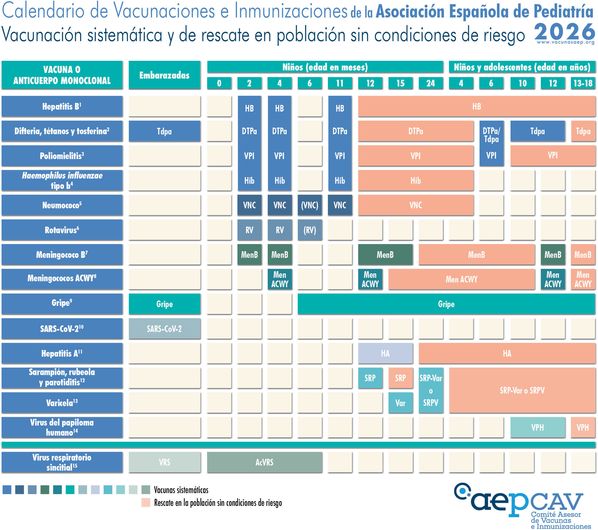 Calendario de vacunaciones e inmunizaciones de la Asociación Española de Pediatría: recomendaciones 2026